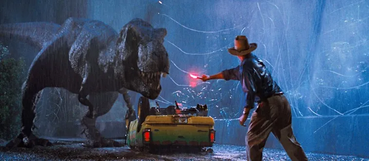 What was the name of the blockbuster film released in 1993 that featured dinosaurs brought back to life through genetic engineering?
