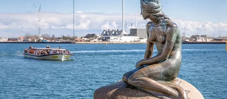 The Little Mermaid, a bronze statue of Hans Christian Andersen’s fairy tale character, sits on a rock by the waterside. Which country?