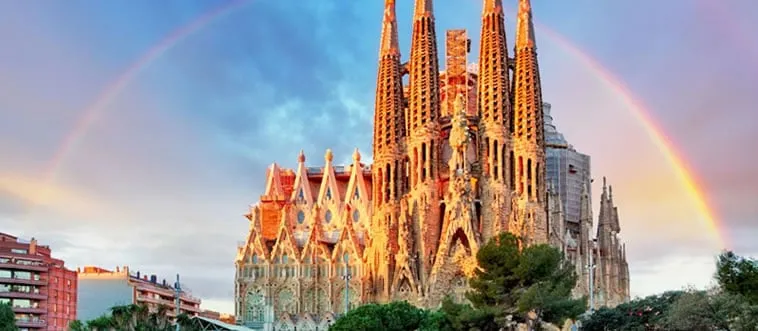The Sagrada Família, an unfinished basilica with organic, towering spires, is Antoni Gaudí’s masterpiece. Which country?