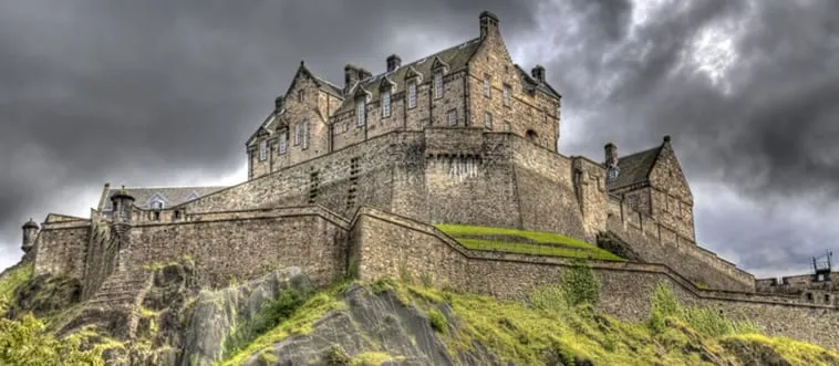 The Edinburgh Castle, a historic fortress on a volcanic rock, dominates a city skyline. Which country?