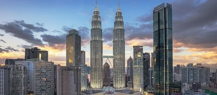 Which city lights up with Petronas Twin Towers?