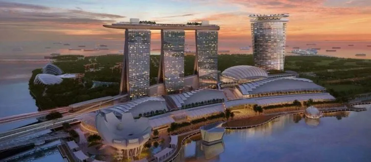 Which city skyline features Marina Bay Sands infinity pool?